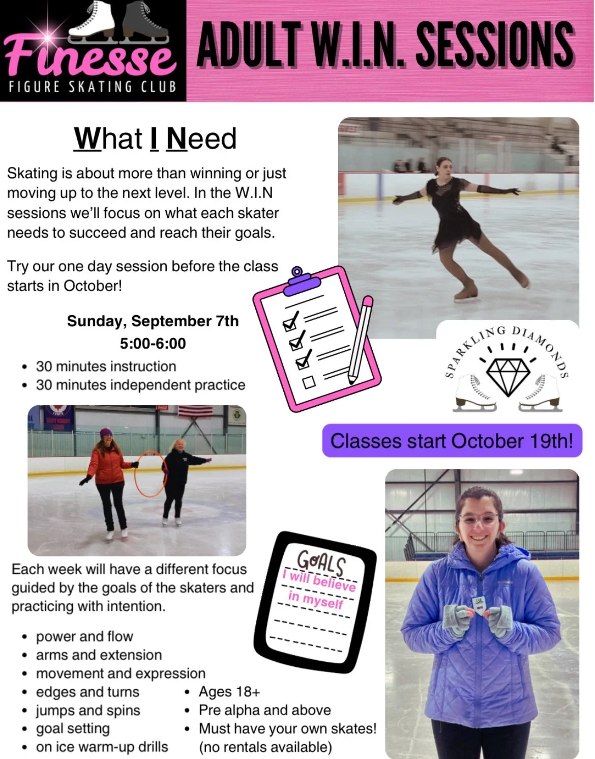 Enroll below for our fall 2025 Adult W.I.N. Sessions for intermediate & advanced skaters.